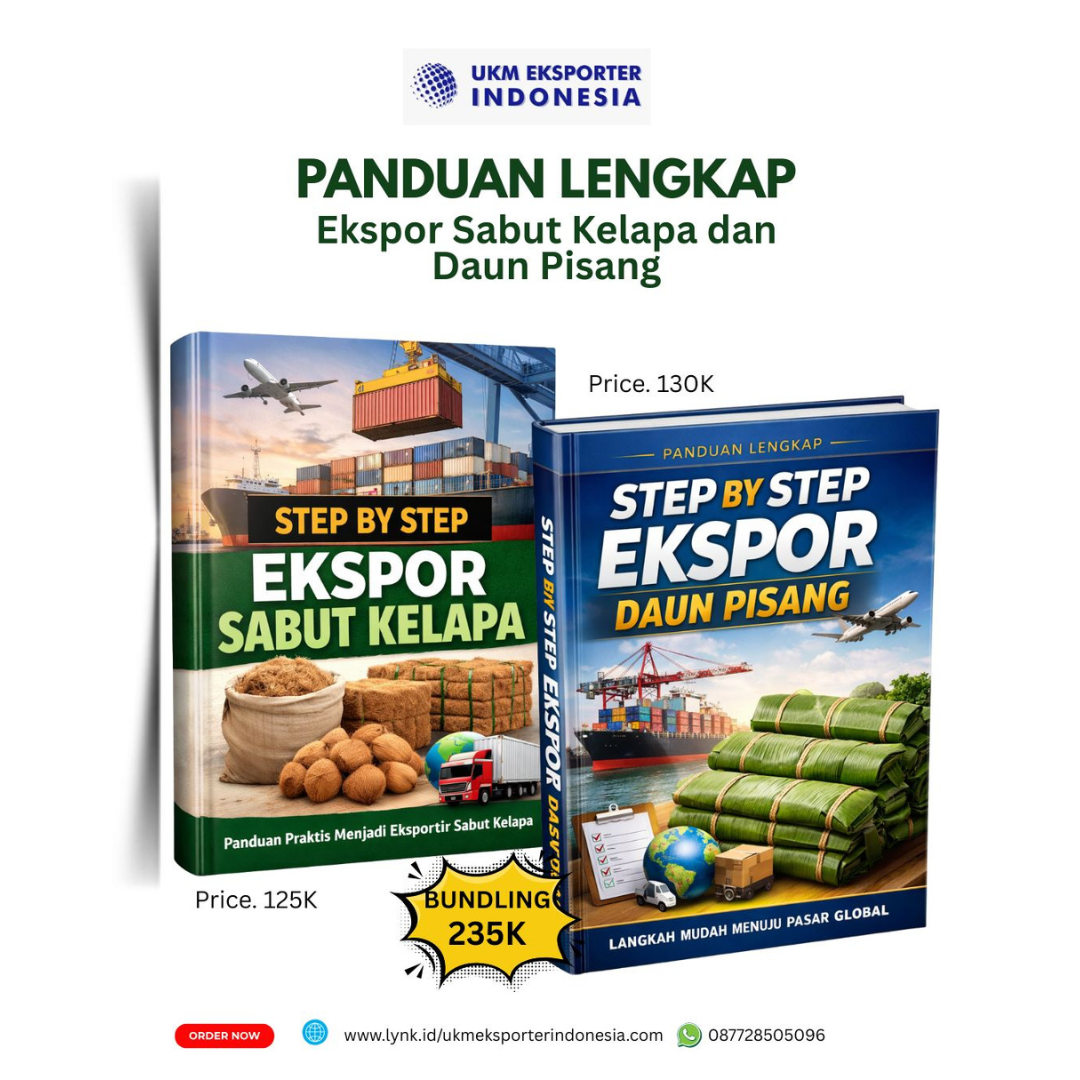 Ingin memulai bisnis ekspor dari komoditas yang mudah didapat di Indonesia? Ebook Panduan Lengkap Ekspor Sabut Kelapa dan Daun Pisang hadir sebagai solusi praktis untuk Anda yang ingin menembus pasar global dengan langkah yang tepat dan terarah.
